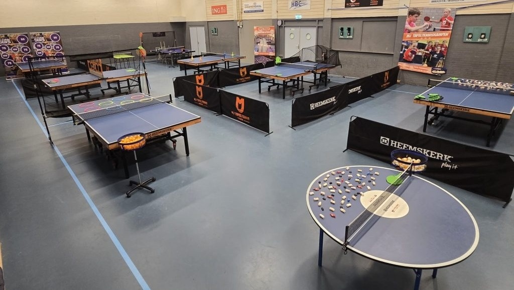 Tijdens een volledig verzorgd MJ Tafeltennis – Eventspartijtje zorgen we voor een superleuk spellencircuit, waarbij je achter elkaar verschillende tafeltennisoefeningen en -spelletjes doet. En wat dacht je van het spel snoepjestafeltennis: mik op de tafelhelft met snoep en win ieder snoepje dat je raakt! Maar we hebben ook een tafeltennisrobot die achter elkaar ballen op je af schiet (natuurlijk wel zo dat je ze terug kunt slaan!), minitafels met minibatjes, de ballenzwever, push-pong en nog véél meer. Als je dat leuk vindt is er bovendien ook de keuze voor een echt tafeltennistoernooi.
