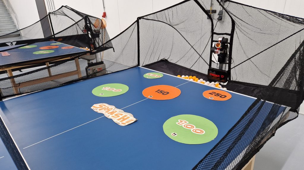 Nog een stapje verder? Dan nemen we onze tafeltennisrobots mee. Heel leuk en leerzaam om tegen te spelen. Onze robots kunnen alles; plaatsing, effect, snelheid en frequentie. Alles is per speler in te stellen.